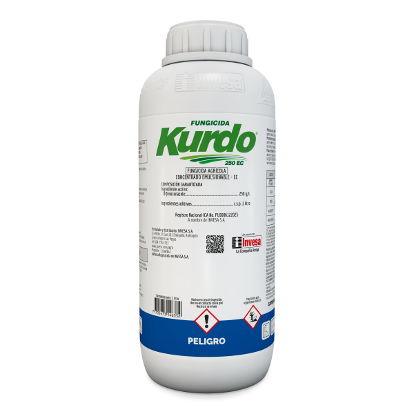 1. Para garantizar uniformidad de la mezcla, coloque la cantidad de Kurdo 250 EC a aplicar en un recipiente con agua hasta la mitad y agite suficientemente, complete luego el volumen de agua requerido mientras continúa agitando la mezcla mecánica, hidráulica o manualmente.